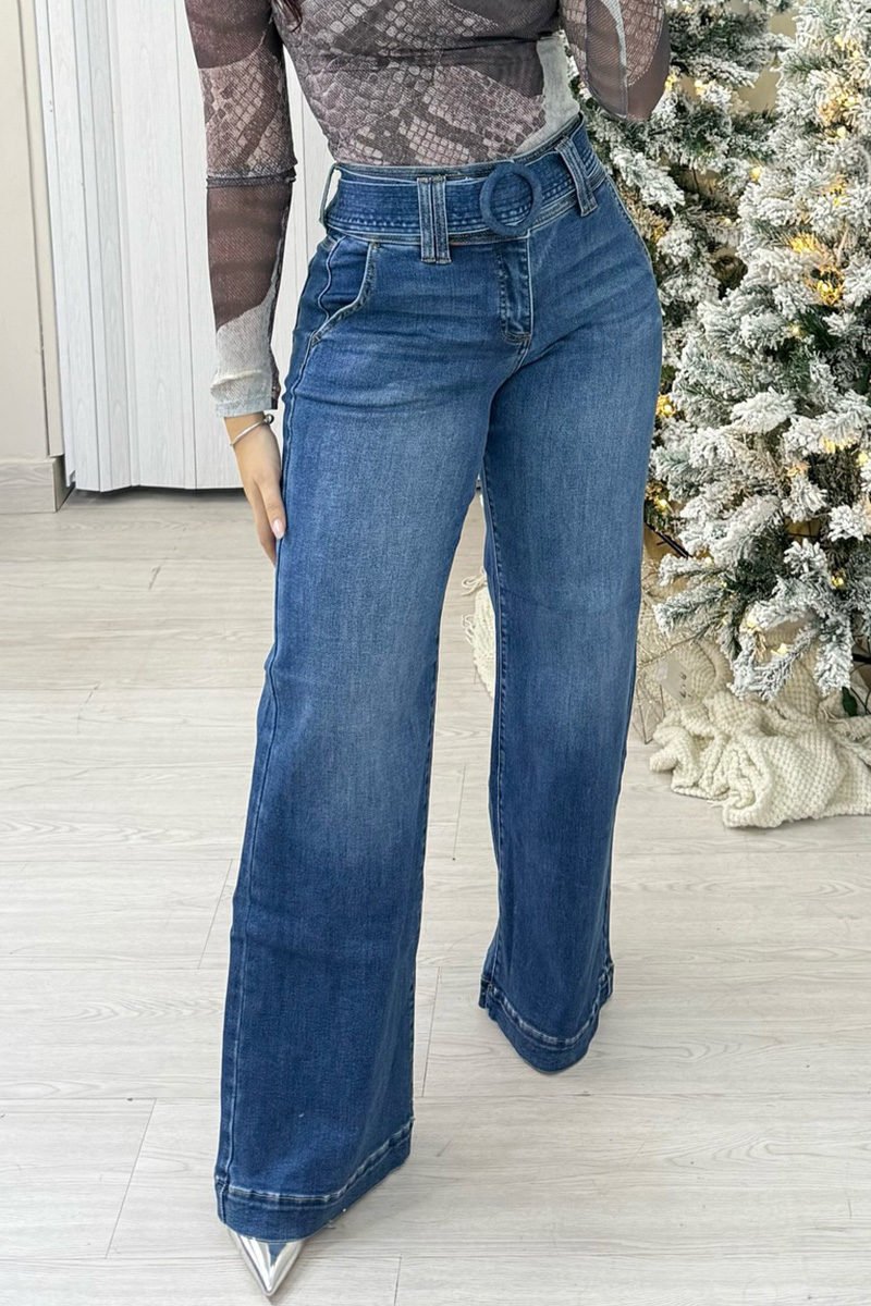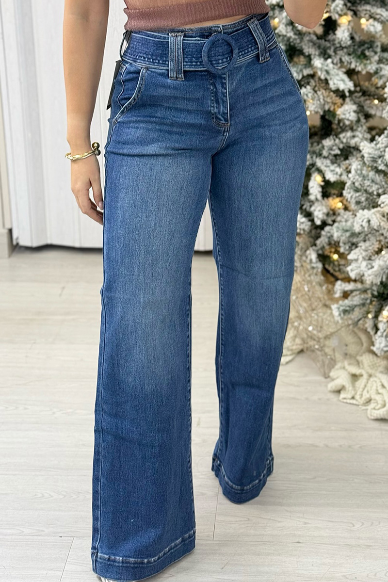 Women's Retro Style Wide Leg Belted Jeans